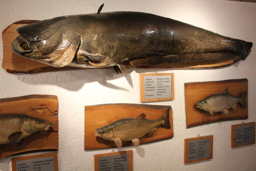 .Der Europäische Wels, einer von weltweit rd. 4000 Welsarten hat eine schleimige schuppenlose Haut, in diese ist ein komplexes System von Elektrorezeptoren eingebettet, dessen Funktion bislang nicht vollständig erforscht ist. Zur Orientierung im oft trüben Wasser nutzt der Wels seine 6 stark ausgeprägte Barteln. Diese empfindlichen Tastorgane spielen, neben dem Geruchssinn, eine wichtige Rolle bei der Wahrnehmung von Beute und Artgenossen. Welse nutzen niederfrequente Töne bei der Nahrungssuche, diese nutzen sie auch gemeinsam mit Körper-, Kopf- und Bartelkontakt zur innerartlichen Kommunikation. All dies und seine besonders kräftige Schwanzflosse tragen dazu bei, dass die Angelfischer für den Wels keine große Gefahr darstellen; natürliche Feinde hat er nicht. Als opportunistischer Räuber ernährt er sich überwiegend von Fischen, nimmt aber auch Insekten, Würmer, Krebse, Schnecken und Frösche auf. Größere Exemplare holen sich gelegentlich auch mal kleine Wasservögel und Säugetiere. Durch sein Auftreten wurden die natürlichen Lebensgemeinschaften vielerorts erheblich gestört, bis hin zum Verdrängen heimischer Fischarten, mit erheblichem Einfluss auf das ökologische Gleichgewicht. Bei uns am Neckar bieten die Verbauungen (Stauwehre) dem Wels Unterstand, wo er die Fischansammlungen vor den noch nicht optimalen Fischaufstiegshilfen, darunter die Wanderfische wie Maifische und Meerforellen, als leichte Beute nutzt (beide Wanderfische sind am Stauwehr Ladenburg nachgewiesen).